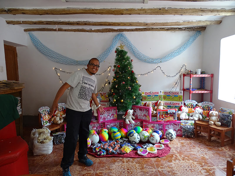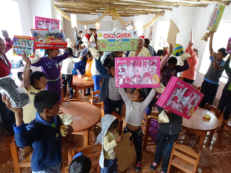 We have a very strong connection with the children from a village called Cay Cai. Cai Cai is located an hour away from the city of Cusco. Here, our foundation celebrates the Christmas holiday every year and gives away useful gifts and tools for their schooling.